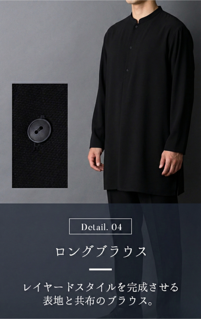 私は身体的にも精神的にも女性ですが普段からジェンダーレスなファッションが好きな為、 一般的な喪服の女性的な装いがとても苦手でした。 なので、やっと出会えた!という気持ちです。 また今後冬用コートなどを含むバリエーションを増やして頂けると嬉しいです。